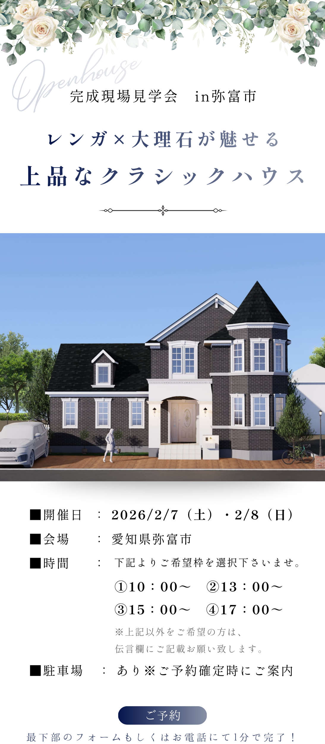| イベント名 | 【弥富市】完成見学会!レンガ×大理石調の、上品で重厚感溢れるお家 |