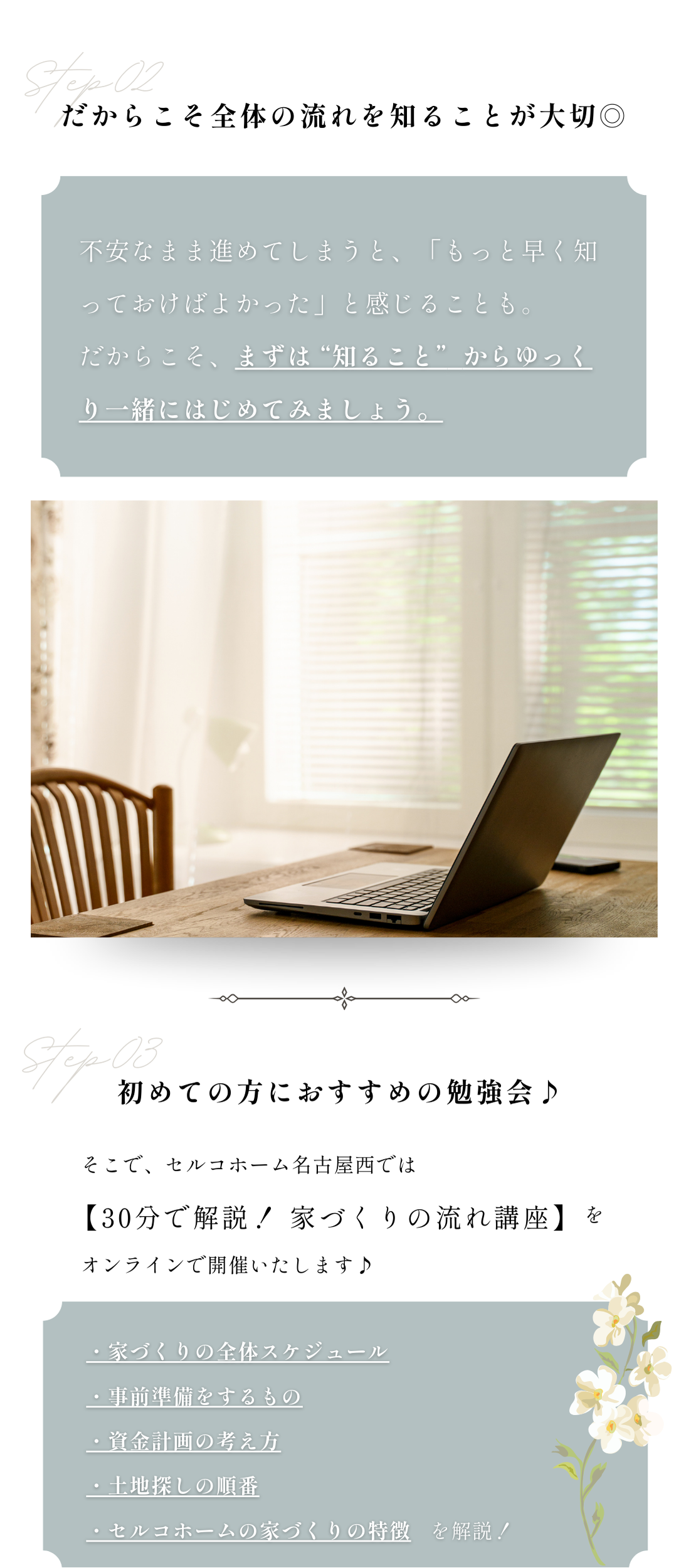 HOME > イベント情報 > 【30分でわかる!】セルコホームの家づくりの流れ解説✨|オンライン勉強会